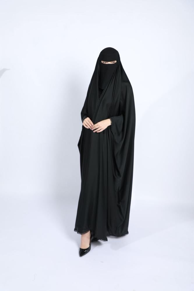 عباية رأس فاخرة – حرير كوري بكلفة دانتيل